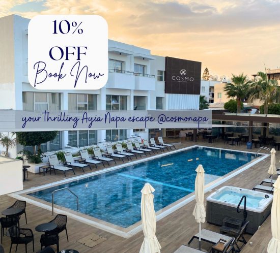 Dreaming of sunny days? We 're saving a spot for you next season! Facebook: Explore our 2025 accommodation options and enjoy our 10% Early Booking Discount on your stay! Visit www.cosmonapa.com or call us at +357 23 840900 to find the perfect stay tailored to your